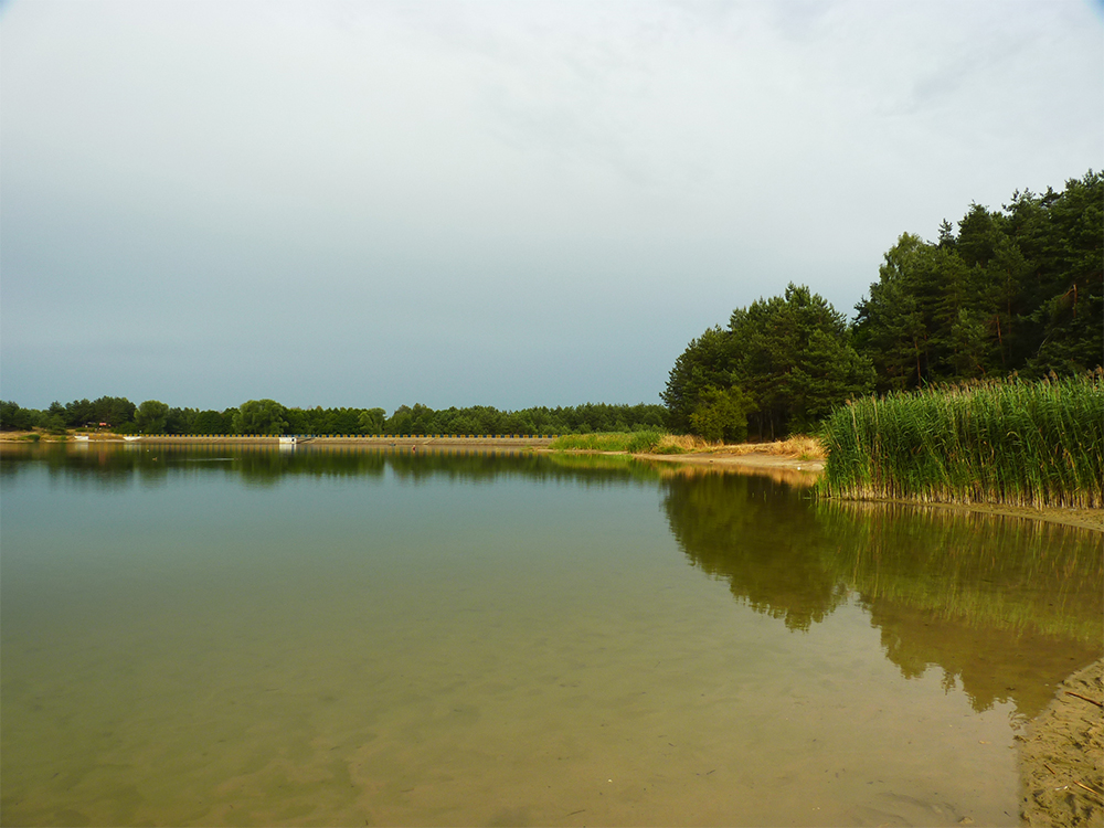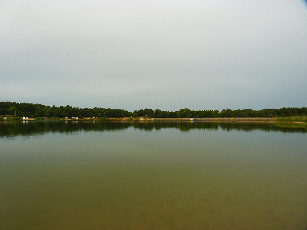 Jako że grzmiało coraz bardziej, postanowiłyśmy się ewakuować. Szukając sympatycznego parkingu z widokiem zajechałyśmy nad Jezioro Dzibice. Wokół trochę namiotów, kąpiące się pomimo pochmurnej pogody dzieci. Niewielki bar na kółkach i kilka wiat - bardzo przyjemne miejsce. Po drugiej stronie wody widziałam większy camping.