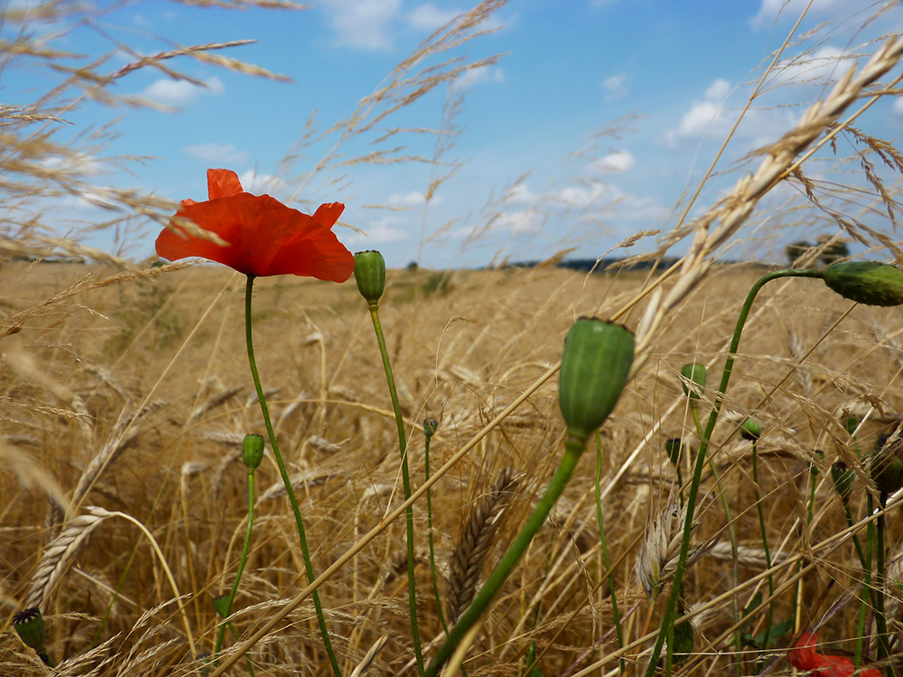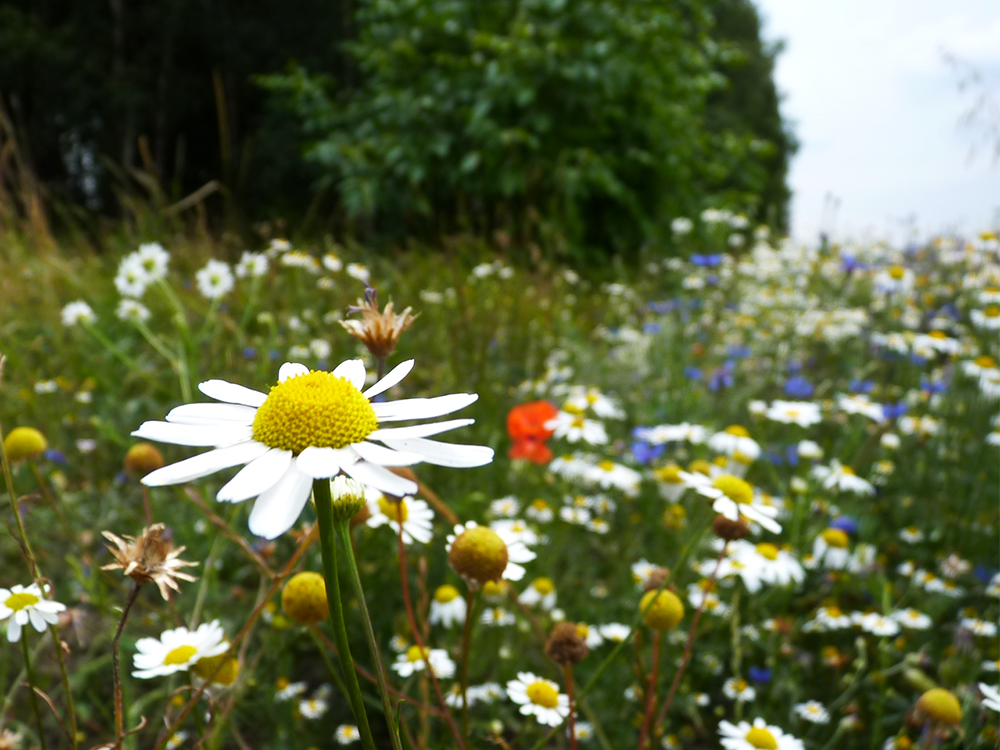 Upał, cykanie świerszczy, lekko przymglone powietrze zwiastujące burzę. I my, zachwycone, między złocistym zbożem i kolorowym polem rumianku.