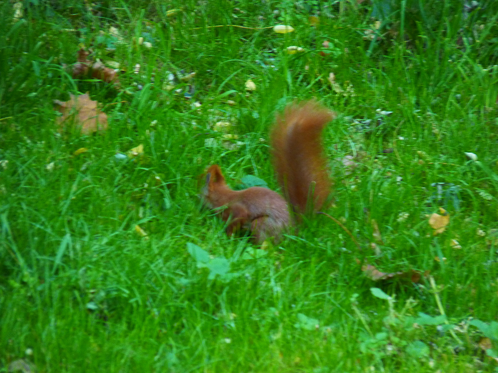 I tak się bawiłyśmy kilkanaście minut, gdy wreszcie nadeszła parka z pieskiem i ruda zwiała na dobre. Oderwawszy wzrok od wyświetlacza aparatu miałam przez kilka chwil problem ze złapaniem ostrości. Taaak. Lekarz uprzedzał, że po czterdziestce okulary się z urzędu dostaje.