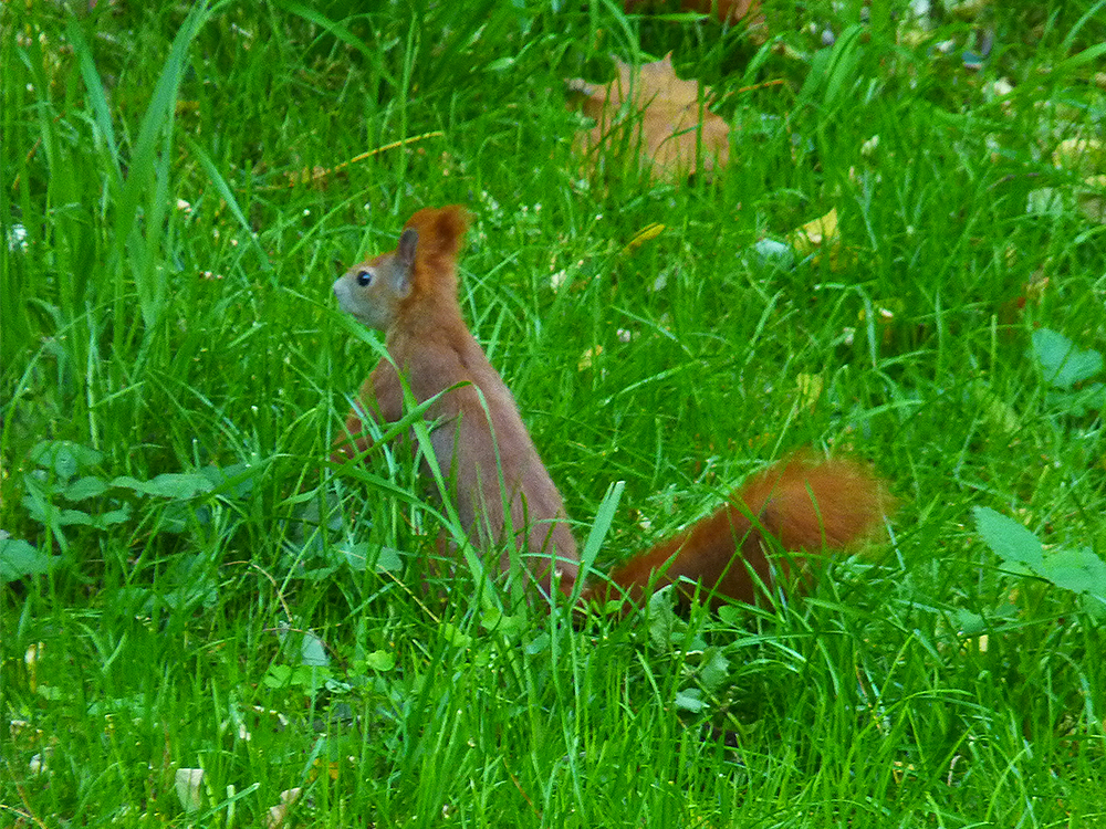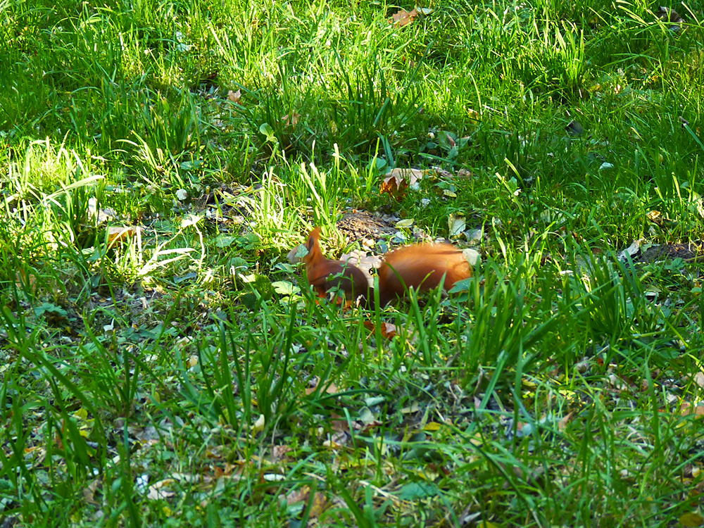 O! Normalne wiewiórki, normalni ludzie, przyzwoite ławki, zielone trawniki i do tego samochody. I tak ma być, to mi się podoba. Przyjaźń międzygatunkowa to moja słabość. Wszystkie zwierzaczki są super, w odróżnieniu od części ludzi.