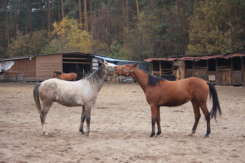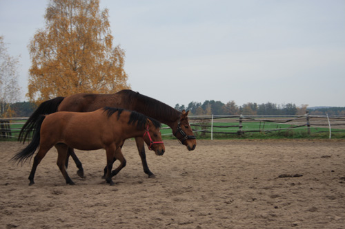 Ciekaw byłem również nowej klaczy, która pojawiła się ostatnio w stajni. Stado jeszcze jej nie zaakceptowało. Przy porannym karmieniu trzymała się na uboczu ale ze smakiem zjadła garść siana, które jej przyniosłem po czym z innym trzymającym się na uboczu koniem przeniosła się w odległy koniec padoku z dala od stada.