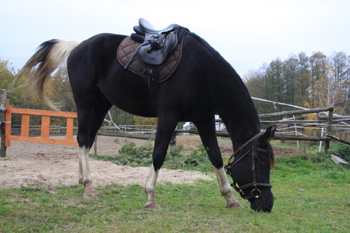 W tygodniu naprawiłem 3 palcaty podklejając do ich końcówek kawałki złożonej skóry, jakiś czas wytrzymają ale obawiam się, że to niezbyt trwały patent. Ciągle próbuję znaleźć bardziej wytrzymalsze rozwiązanie. Koło śmietnika pod blokiem znalazłem lekko pękniętą łopatę, kolega ojca pospawał mi ją - odwdzięczyłem się butelką Żubra. Przywiozłem ją do stajni, może przyda się do sprzątania - czasem zdarza się, że konie wypróżniają się w stajni podczas przygotowania do jazdy.