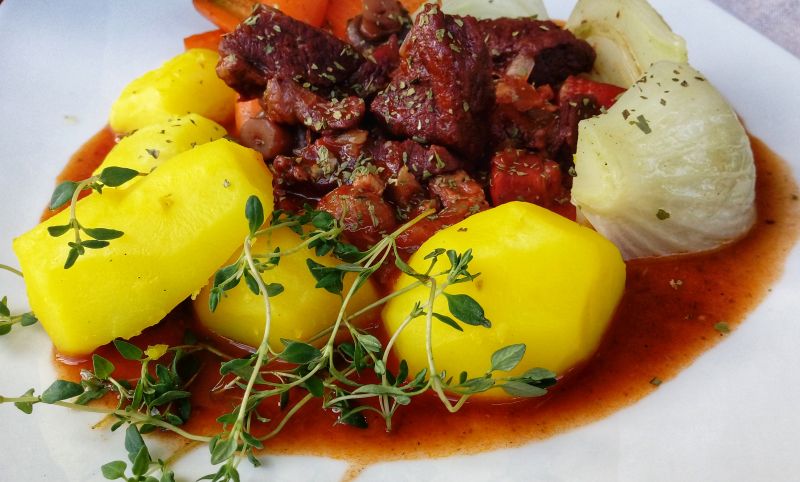 Przeglądając moje ostatnie przepisy zauważyłem, że już dawno nie gotowałem nic mięsnego. Przyznam się, że trochę obraziłem się na mięso i staram się ograniczać jego spożycie na korzyść innych produktów, które świetnie sprawdzają się jako źródła białka roślinnego. Dziś jednak z racji tego, że przed nami weekend i na pewno wielu z Was szuka inspiracji na porządny niedzielny obiad zdecydowałem się przygotować coś wyjątkowego. Wołowina po burgundzku to niezwykle aromatyczne danie, które zadowoli każdego mięsożercę. Choć potrawa ta wymaga 3-godzinnego duszenia to samo przygotowanie nie jest czasochłonne. Wystarczy wszystko podsmażyć, a następnie wrzucić do większego garnka i dusić aż wołowina będzie rozpadać się pod naciskiem widelca. Nic trudnego, a efekt jest fantastyczny 😊