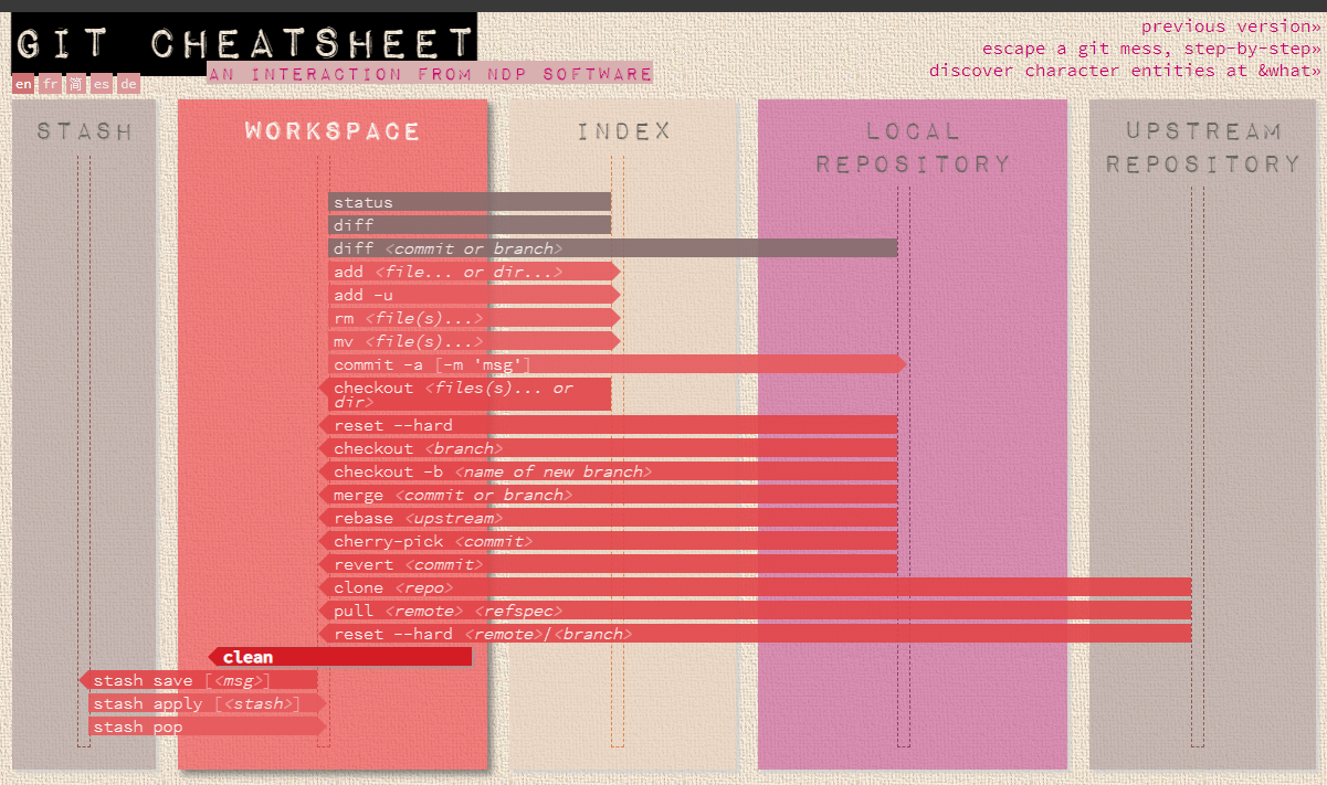 Przejrzysty git cheatsheetsteemCreated with Sketch.zerotoone (55)in #polish • 7 years ago Bardzo ładny interaktywny i przejrzysty cheatsheet od ndpsoftware #pl-programowanie #pl-news