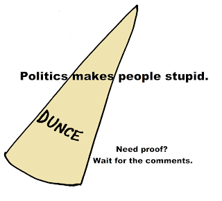 It's not just "the right" and "the left", although those are the most obvious examples in modern America of where politics leads. Where "libertarianism" becomes political instead of being above politics, it is just as bad. Politics makes people stupid.