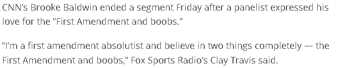 CNN Host ENDS Segment After Panelist States Love Of ‘First Amendment And Boobs’. The controversy over the ESPN comments is getting weird.
