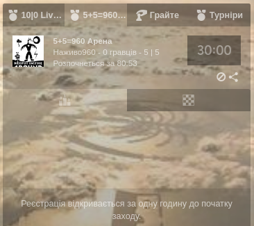 В последнем уже скопилась дюжина ссылок на турниры и только 1 игрок из этого сонного царства)))