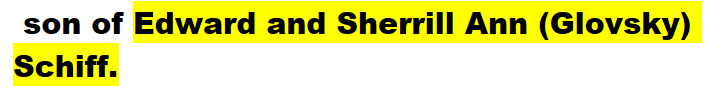 ADAM IS son of Edward and Sherrill Ann (Glovsky) Schiff.