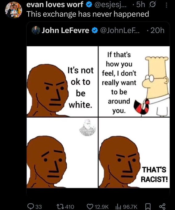 Woke nonsensesteemCreated with Sketch.pgveer (70)in #politics • 4 days ago Jack Blake doesn't support premeditated murder not so far-fetched, sadly flag explains insane revisionism That's... not a child stop the gaslighting. NASA = pure competence you do, when YOUR side is in power THAT'S your take? #memes #woke #dei
