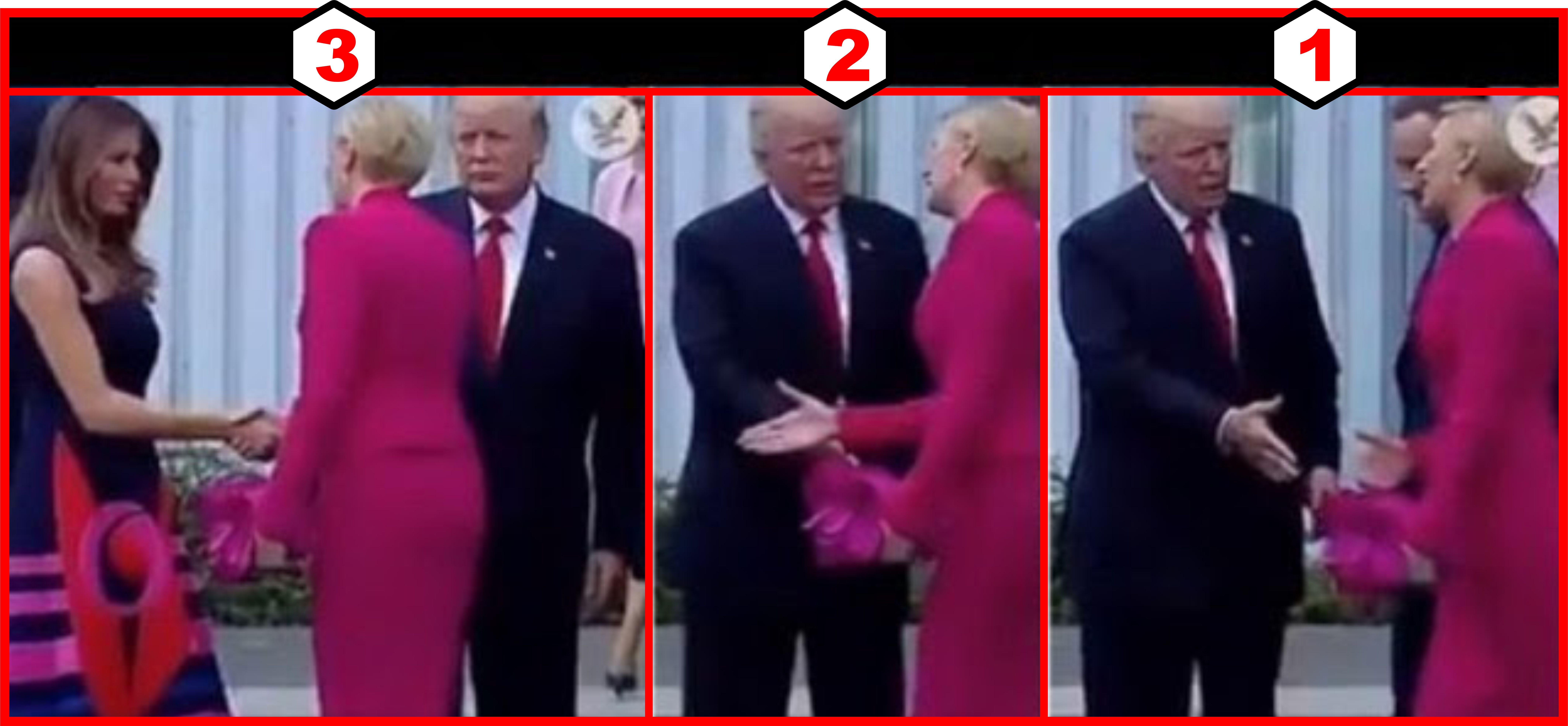 Kejadian memalukan ini terjadi disaat kunjungan kenegaraan ke Polandia, dalam sesi foto di atas panggung, Trump mengulurkan tangannya ke first lady Agata Kornhause, namun uluran tangan jabat tangan Trump ini diacuhkan Agata Kornhause yang langsung menyalami Melania Trump.😫