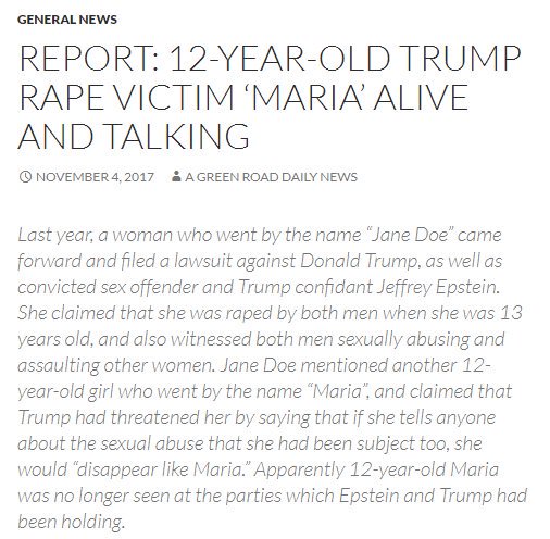 Maria was kidnapped on March 20, 1993, when she was 11-years old from the front of Nash’s Pizza in Waterbury. The girl's kidnappers were involved in a child trafficking ring that provided abductees to wealthy individuals like Trump and Epstein in Manhattan, according to our information. In Donald Trump & Jeffrey Epstein Rape Lawsuit "Maria" identity claimed to be Marisela Pino. She was a 12 year old Hispanic girl. Trump mocked her accent and slapped her according to sworn statements by 2 women.
