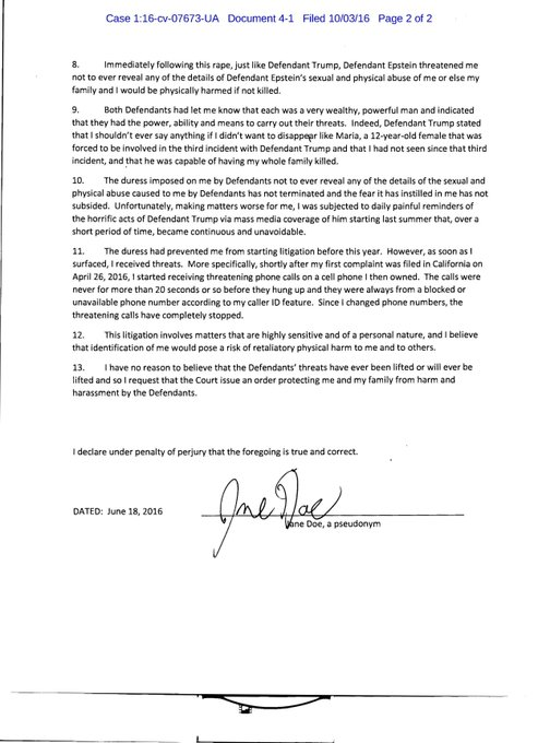 - All the court filings in the Jane Doe vs Trump + Epstein suits can be found at: http://thememoryhole2.org/blog/doe-v-trump
