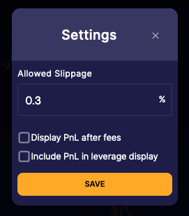 Leverage for a position is displayed as (position size) / (position collateral). If you’d like to display the leverage as (position size + PnL) / (position collateral), you can customize this by clicking on your address in the header and on the Settings button in the dropdown menu.