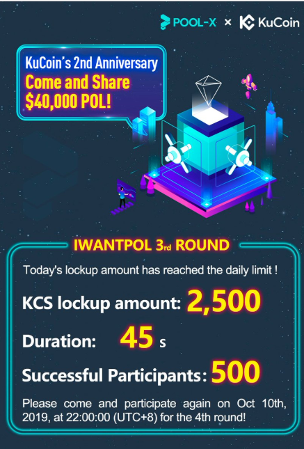 Have you guys joined the 3rd round of pool-x lockup! And now last round would eventually happen on Oct 10. Stay tuned. https://twitter.com/pool_x_official/status/1179766419657019397