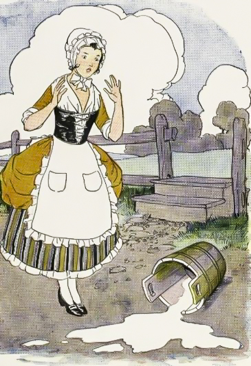 Tseem dreaming, nws hais rau nws tus kheej, "Tsis ntev tom ntej, Kuv yuav tsum tau yuav lwm tus nyuj, thiab kuv yuav muaj ntau mis muag. Tom qab ntawd kuv yuav tsum muaj nyiaj ntau tshaj ... "