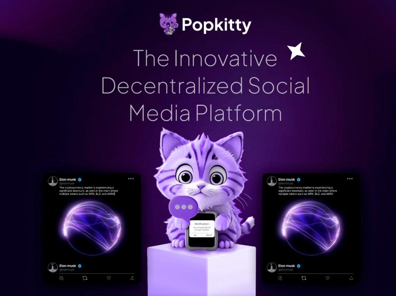 PopKitty envisions a decentralized platform where users can leverage blockchain technology to monetize their content, promote tokens, and build an open, secure, and transparent ecosystem for crypto-related discussions. It will serve as a niche social space for crypto enthusiasts, developers, and influencers to interact, share updates, and create value using PopKitty (POPKI) tokens.