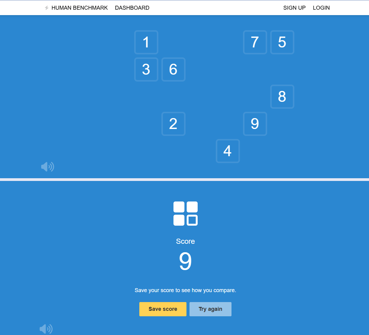There is a game and it is on this page in case you want to play it too and it is used to see how you are doing in visual acuity and memory or something like that, it is about seeing these little squares and memorizing where each number is, because then the numbers are erased and one must click on the squares in the correct order of the numbers they had, if you complete the sequence correctly, you advance in level and the sequence becomes longer and longer.