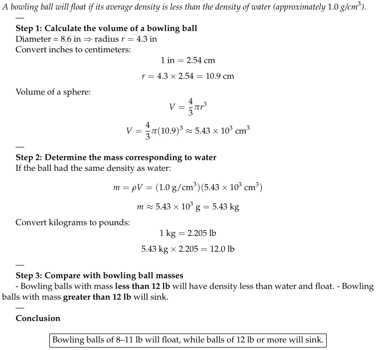 👉 Which (if any) of these bowling balls would you expect to float in water?
