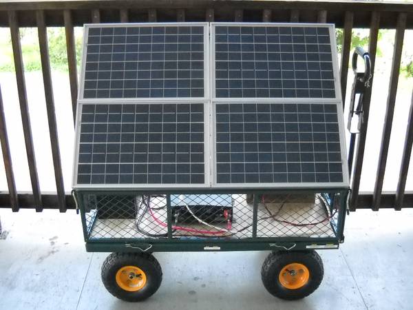 Well that thought has crossed my mind in the positive on several occasions. As I recall you have a garden cart like this. Go put a hundred watt panel on it. This one I made in Hawai'i and used it to run a Peritoneal Dialysis Machine. I did not have the cart yet. Go see what I posted on instructables https://www.instructables.com/member/Dr.Bill/