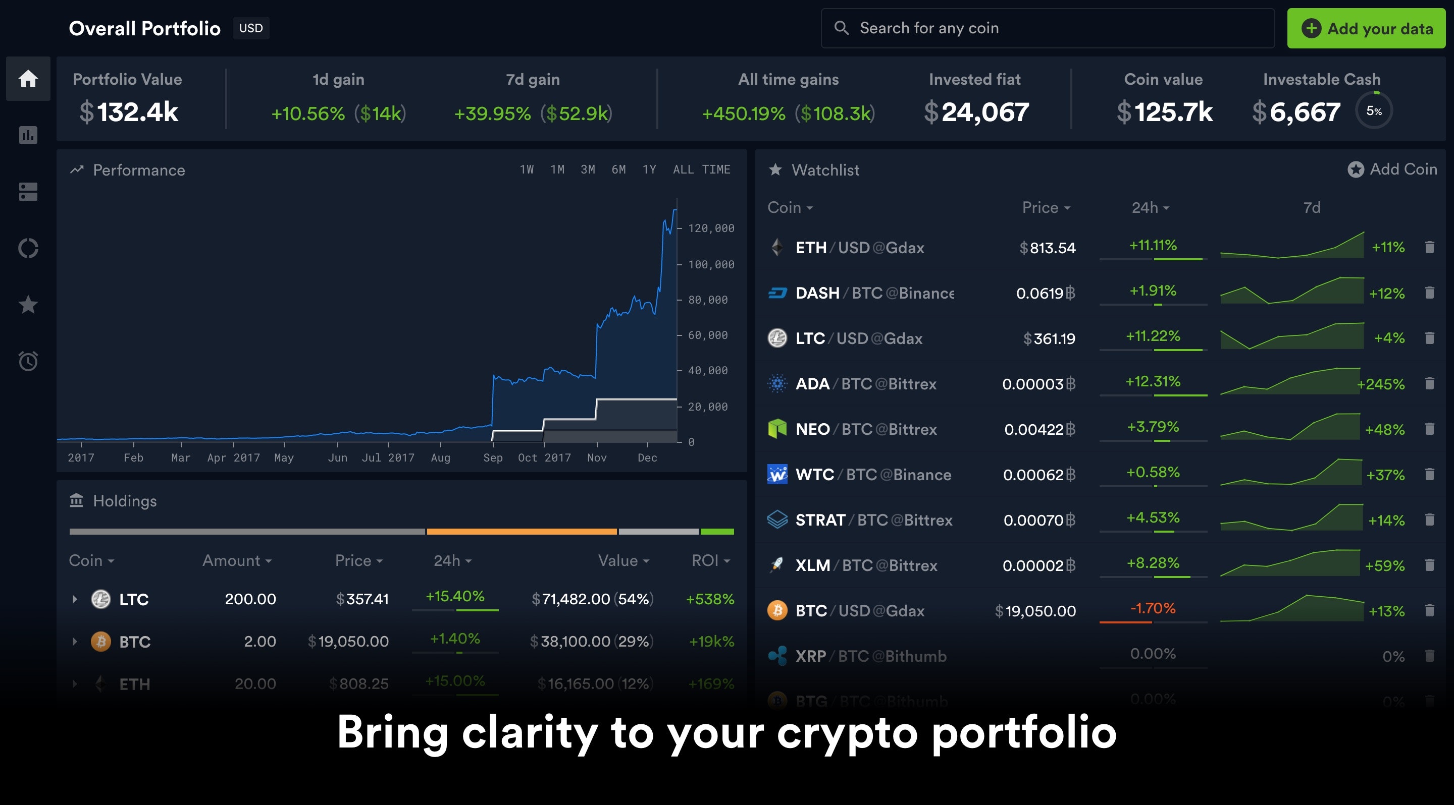 Cons: Need support for more exchanges and more functionalities like cointracking