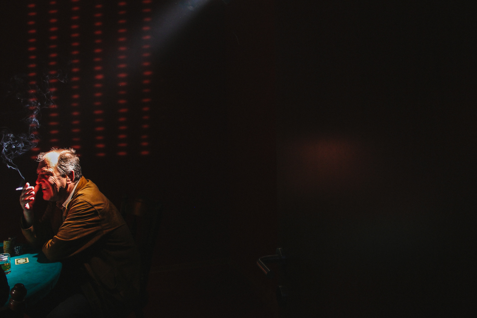 Nice way to capture a fun poker evening with friends, a closer look at his chips seems he was winning ;-).