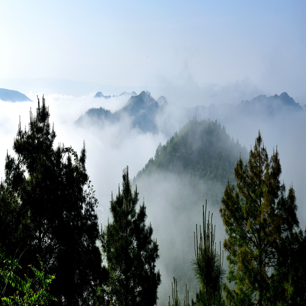 Vast sea of clouds, layer of cloud overlapping shadow, as if to fantasy land.When the sea of clouds rises, all kinds of scenery in the world, in the sea of clouds caprices, some struggling to reveal the top of the shadow of the swaying trees, like the vast ocean mysterious islands, and make the viewer elusive, and then produce a deep, mysterious, mysterious, mysterious sense, hazy beauty.