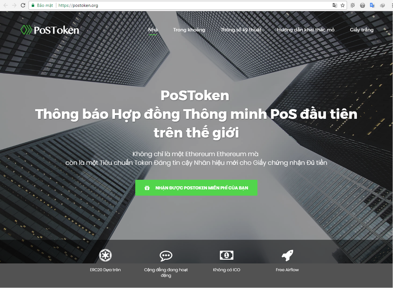 PoSToken không có ICO chỉ có aidrop Có tất cả 10.000.00 POS trong đó 1.000.000 POS đc phát hành miễn phí.