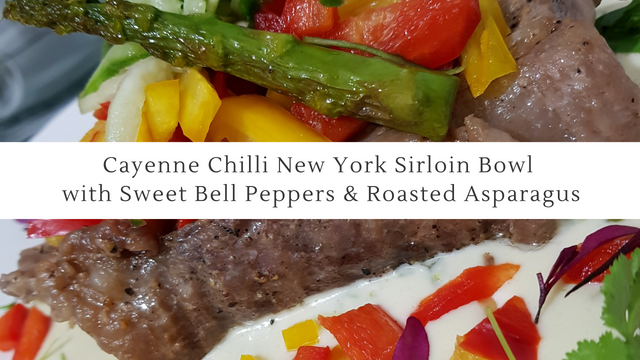 Cayenne Chilli New York Sirloin Bowl with Sweet Bell Peppers & Roasted Asparagus