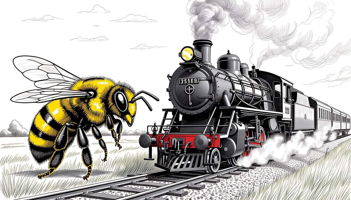 The picture shows a bee confronting a steam engine to symbolize the rivalry between branches of the hardfork. I generated as part of my inktober images