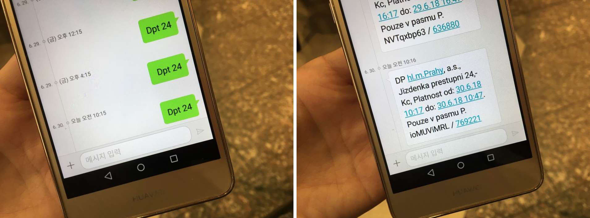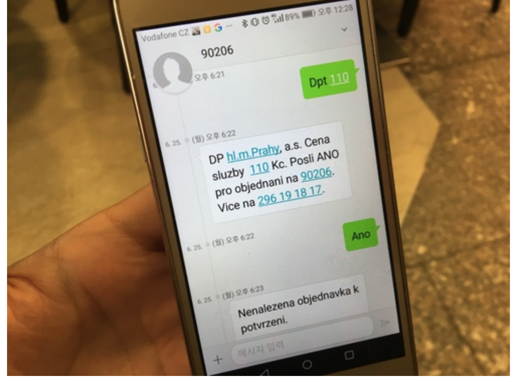 SMS 티켓은 오직 체코 모바일 심을 소지하신 분만 이용이 가능해요.