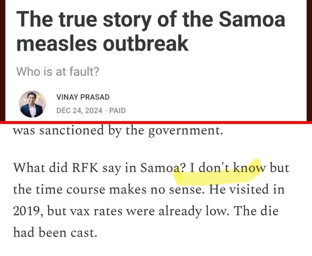 Lol. God it is so easy to be a shameless grifter. Note: it takes two seconds to Google what RFK said in Samoa. He literally wrote public letters to the Samoan government. You can see them.