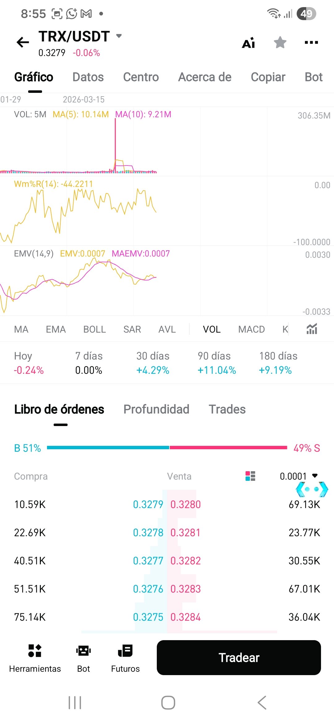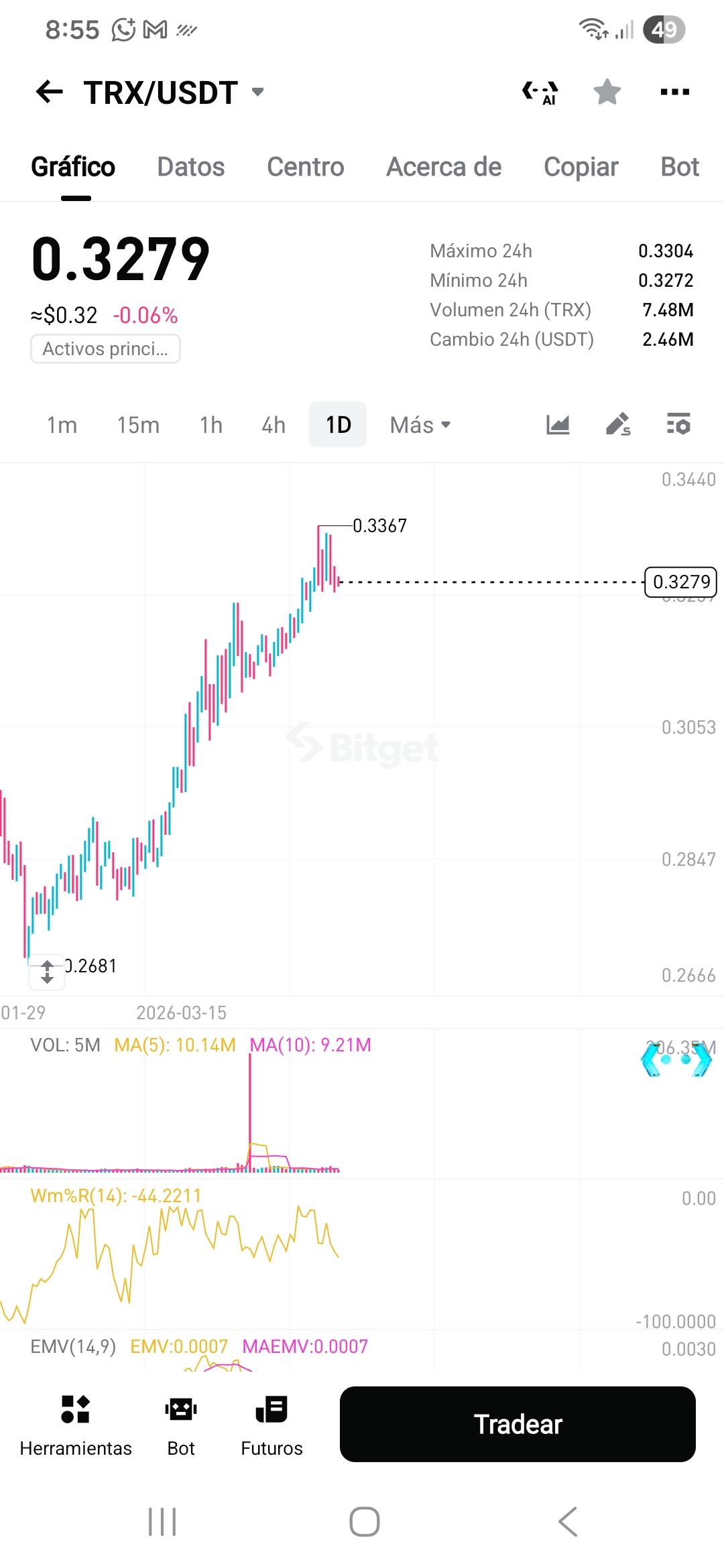 En estos momentos el trx se encuentra a unos 0.3279 USDT.