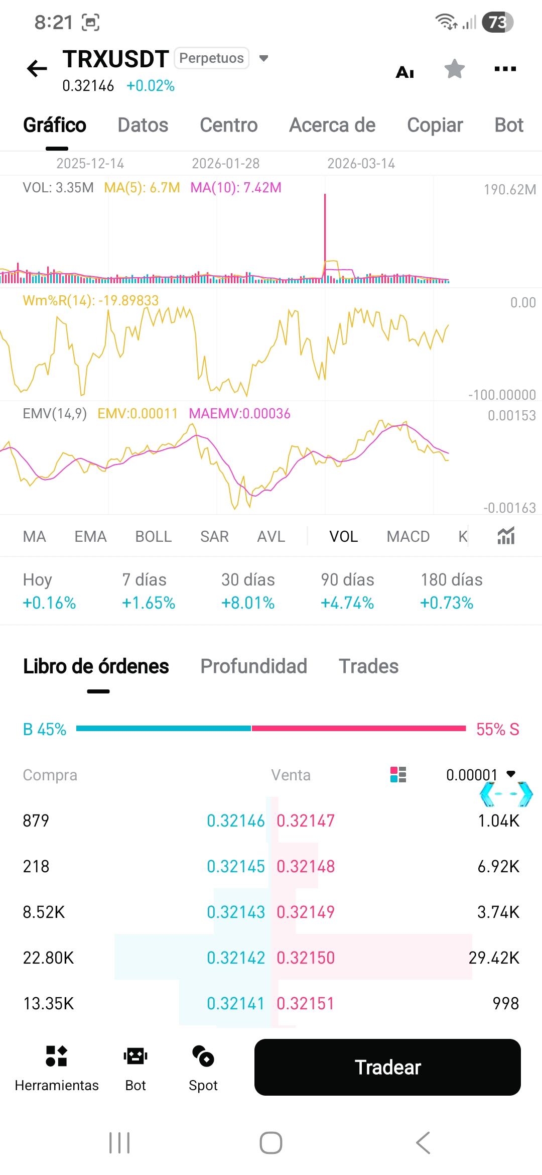 En estos momentos el trx se encuentra a unos 0.3214 USDT.