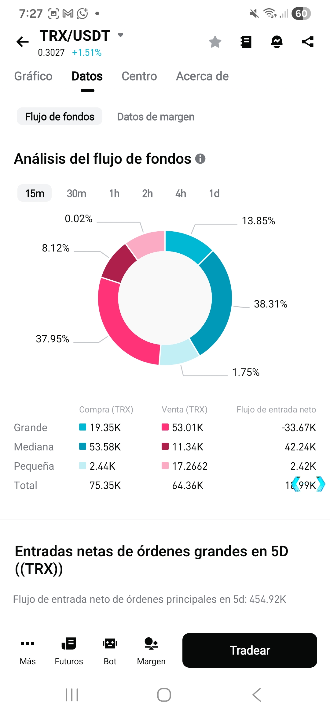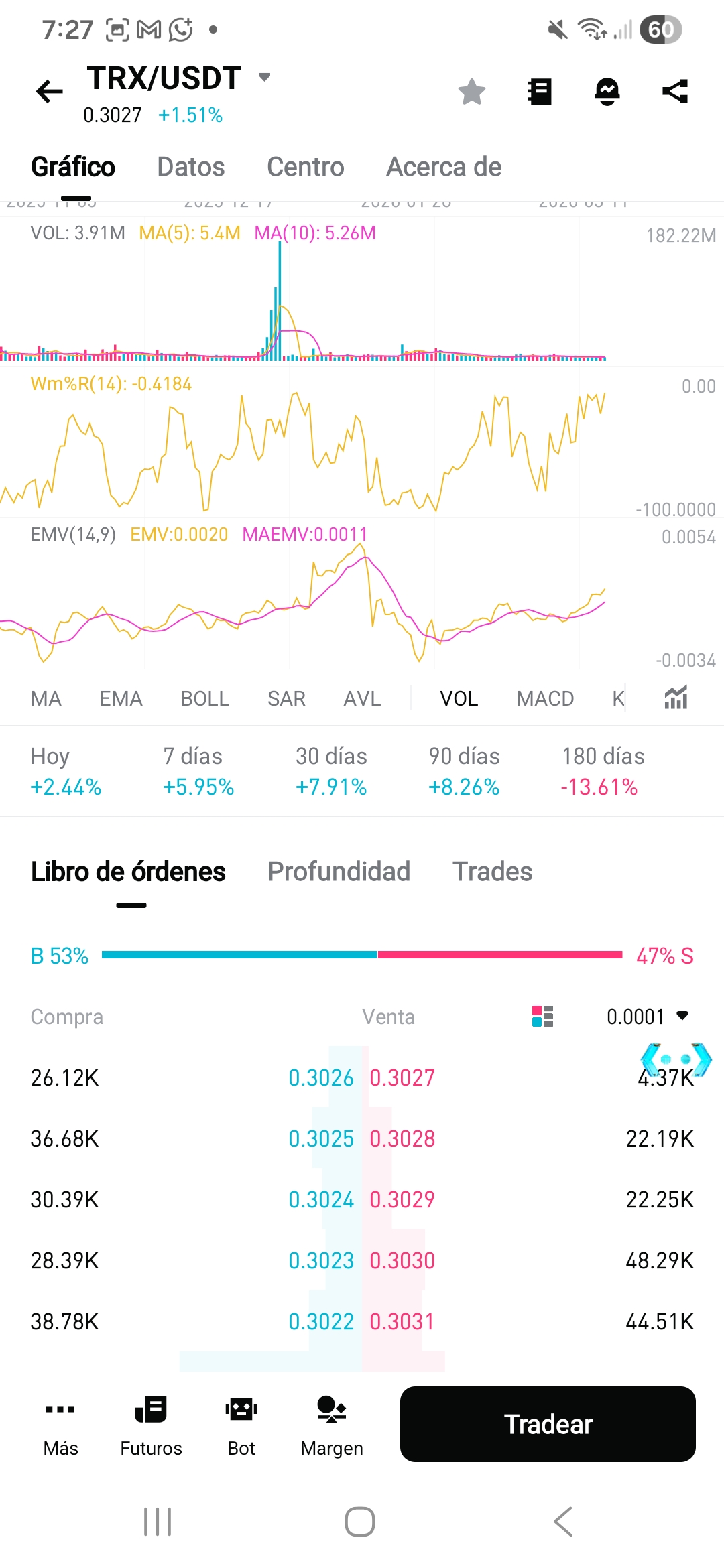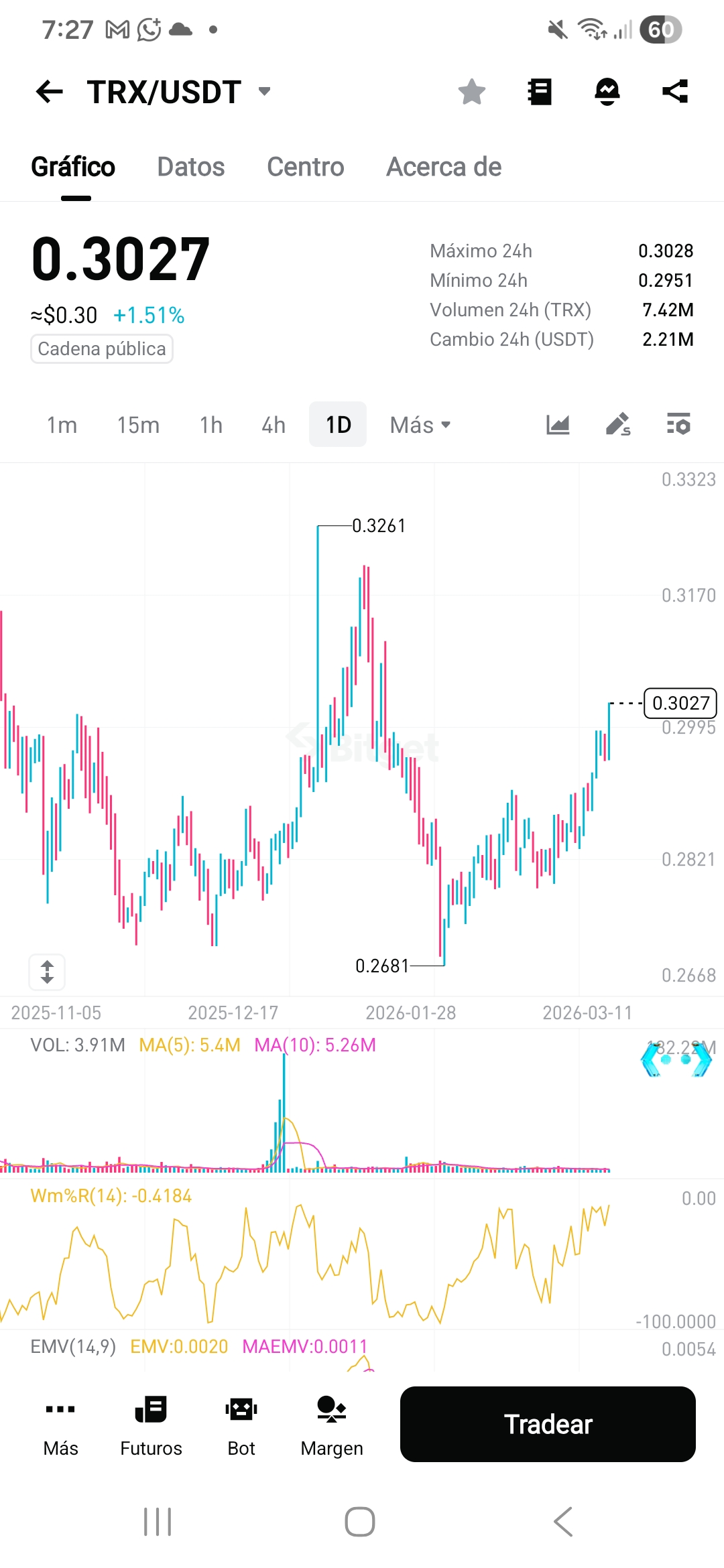 En estos momentos el trx se encuentra a unos 0.3027 USDT.