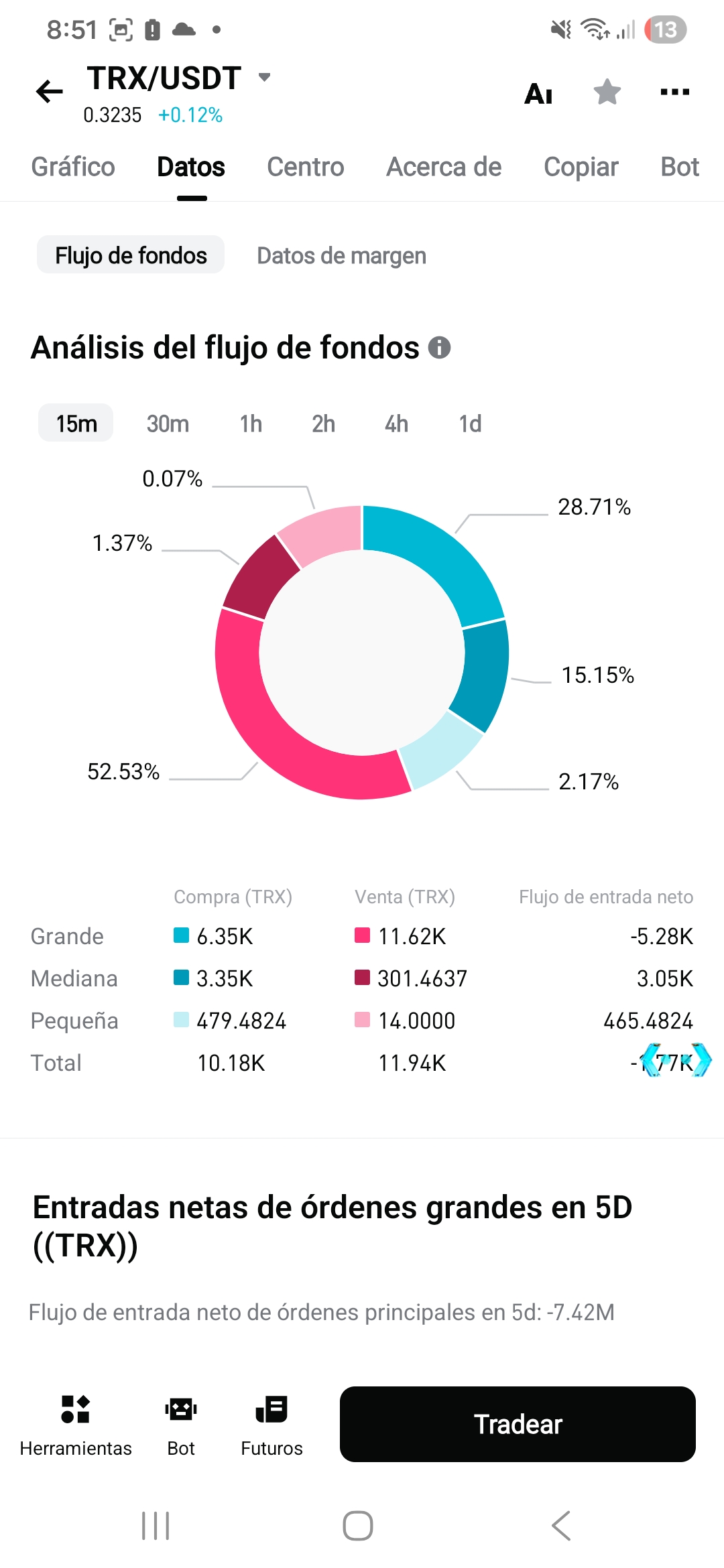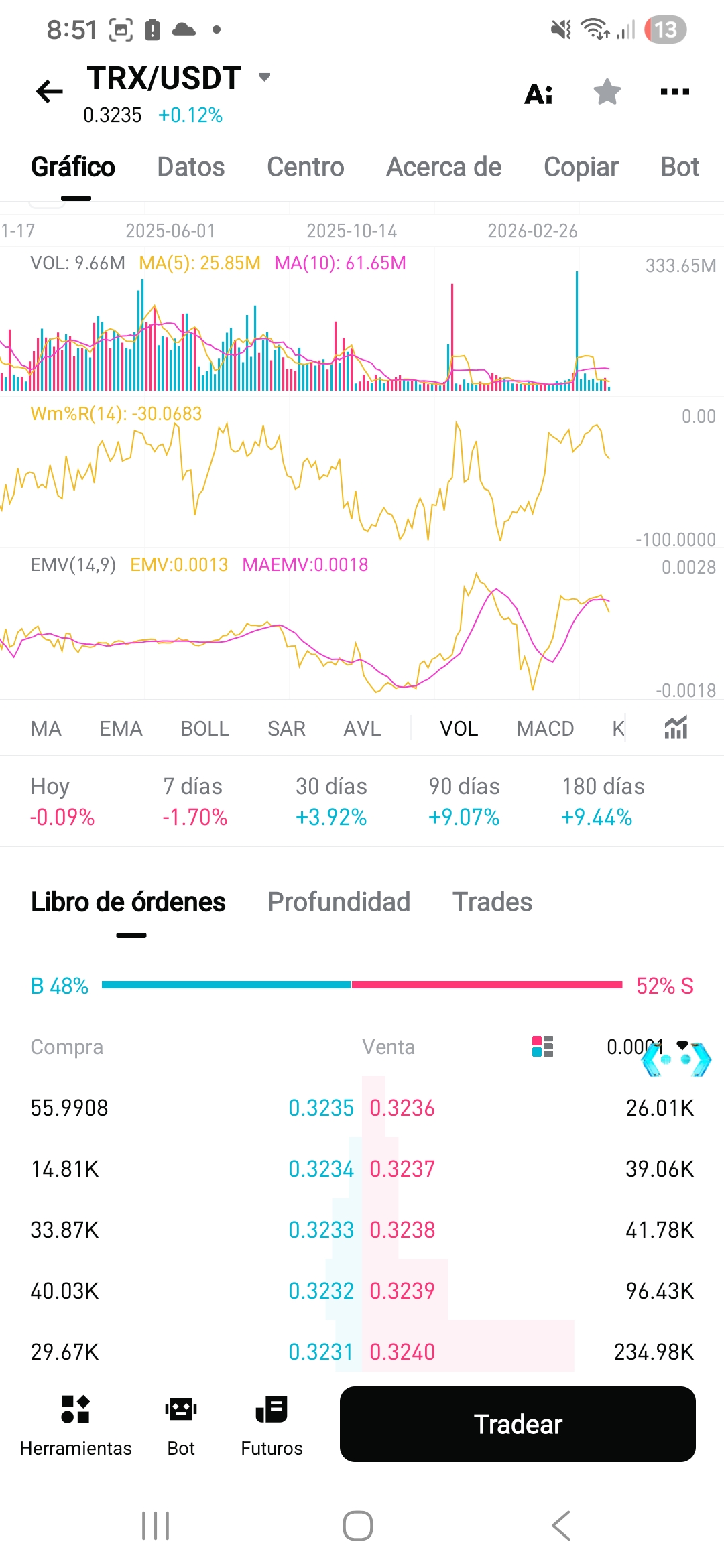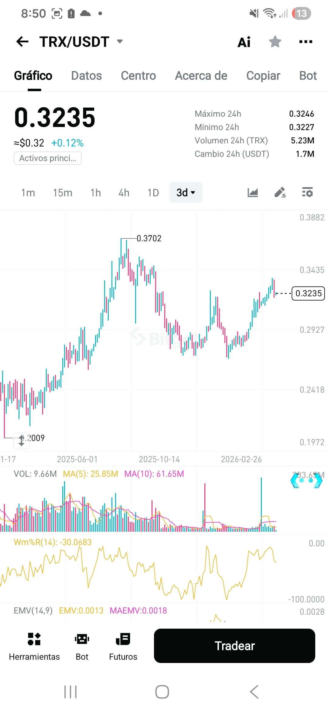 En estos momentos el trx se encuentra a unos 0.3235 USDT.