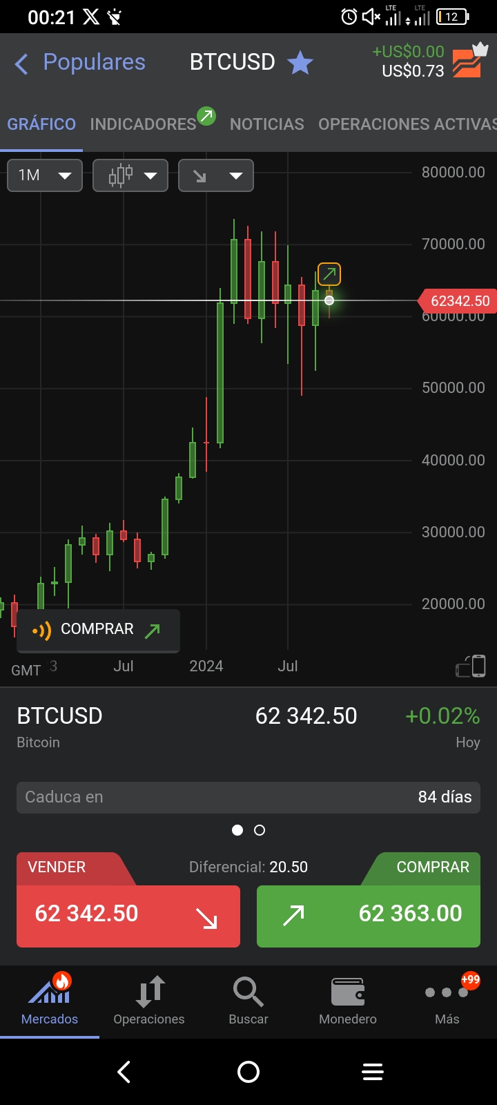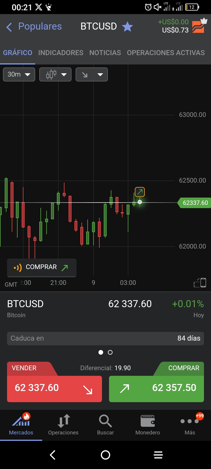 En estos momentos el bitcoin se encuentra a unos 62 340 USD.