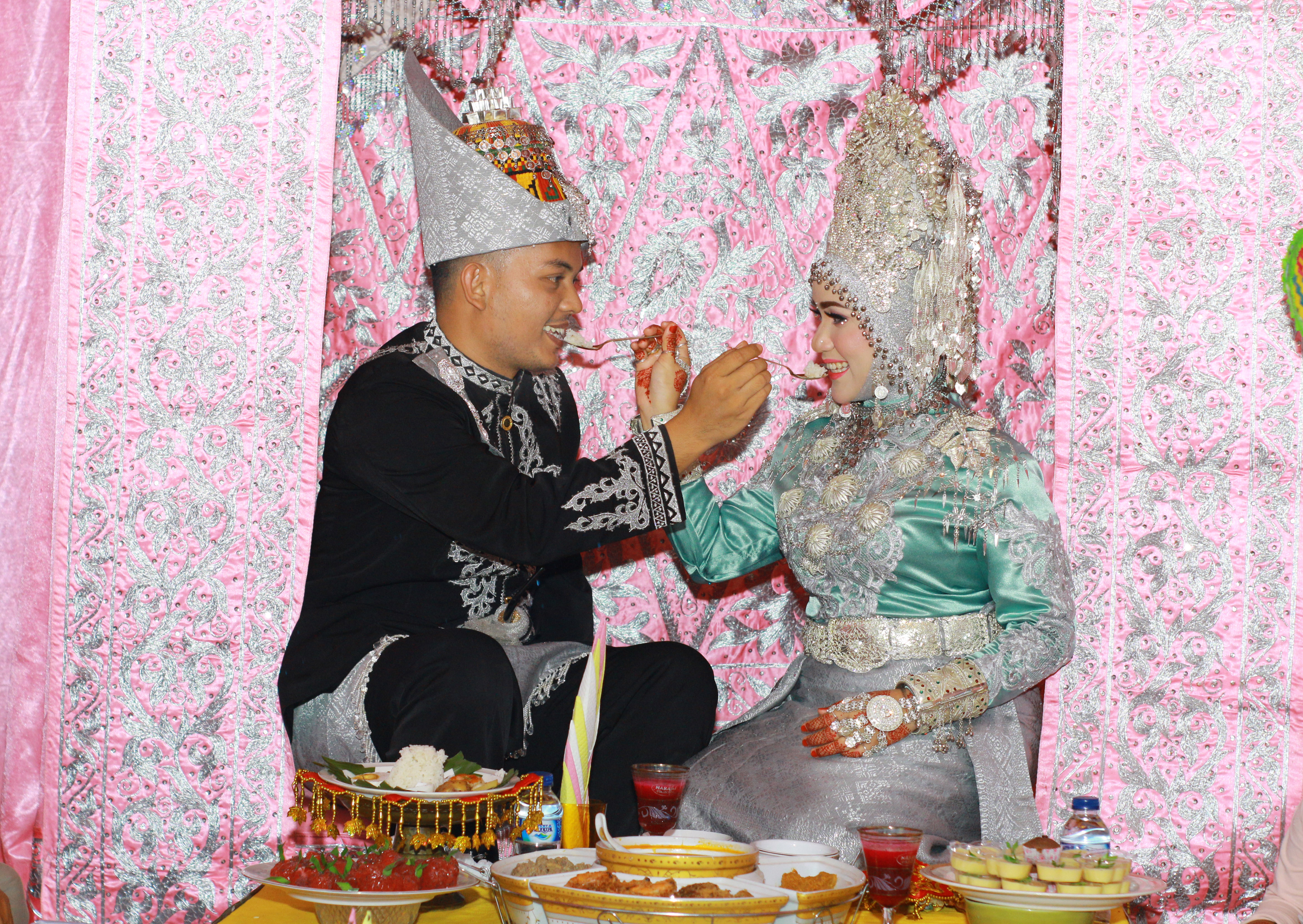 selanjutnya kedua mempelai di bawa ke dalam untuk mencicipi hidangan.