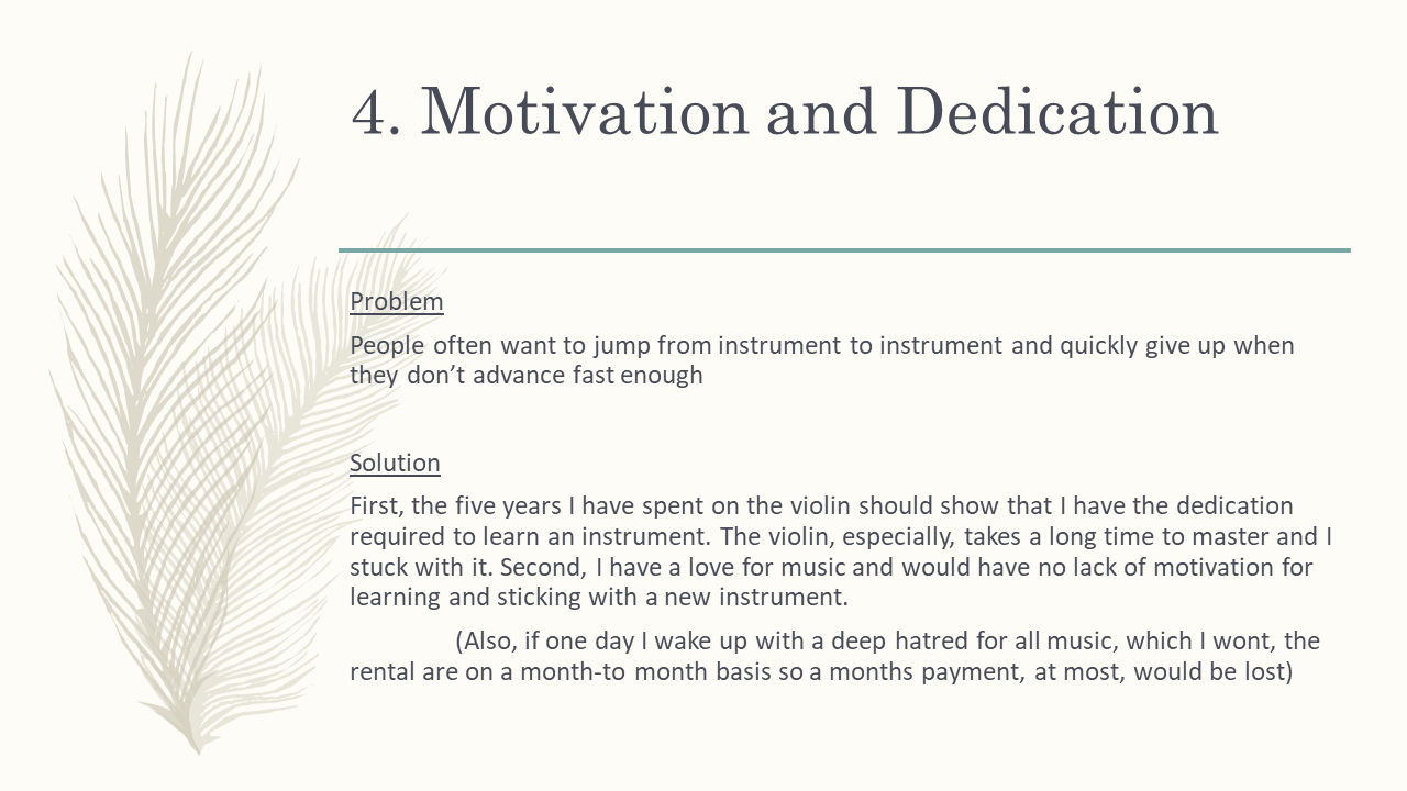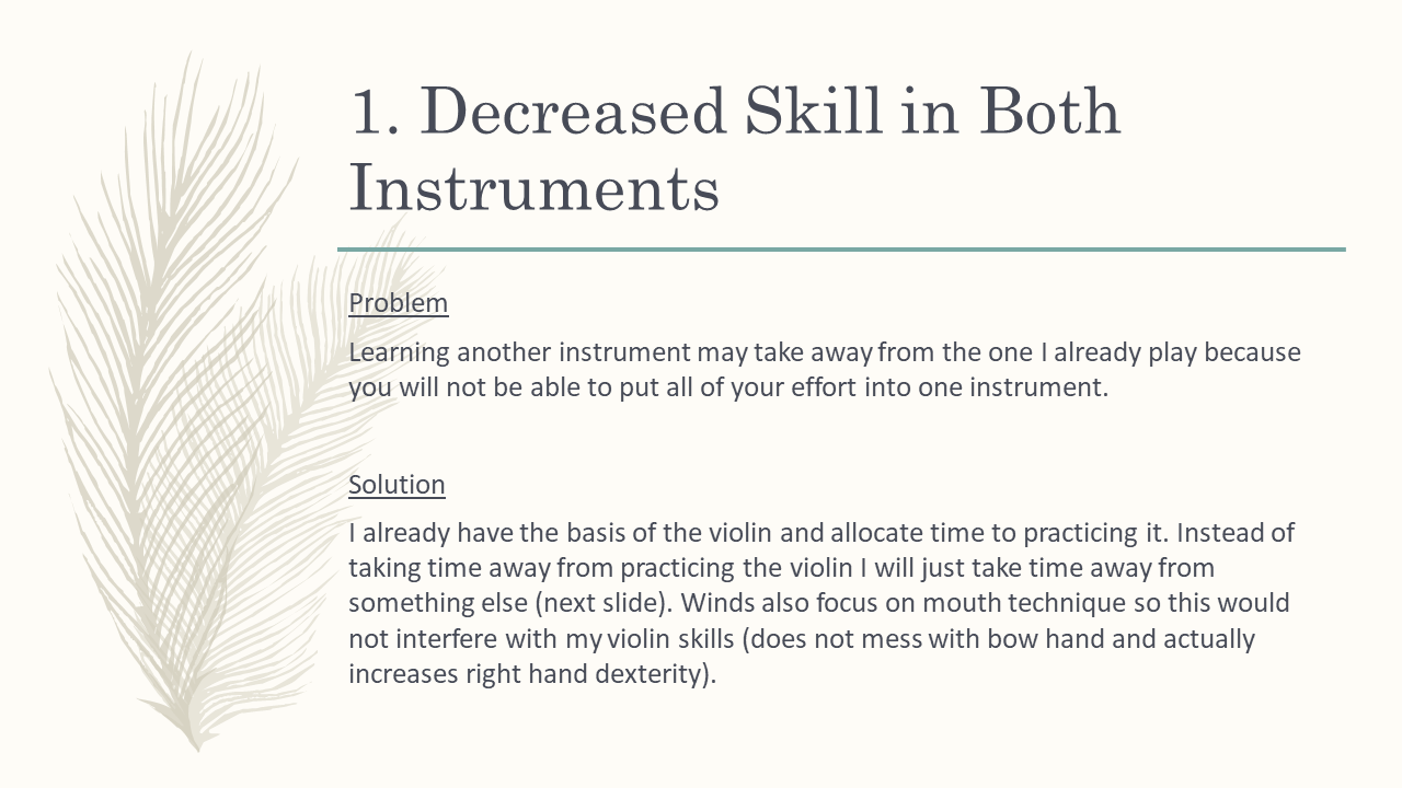 So I have been playing violin for 5 years, but have always been fascinated by wind instruments. In middle school band was double blocked so I was unable to do both. I have finally decided that why what when I could have the opportunity now. I have been asking my dad, but have never gotten a solid answer. So I decided to do what both my English and speech teacher told me to do, go in with the facts. Here is the result: