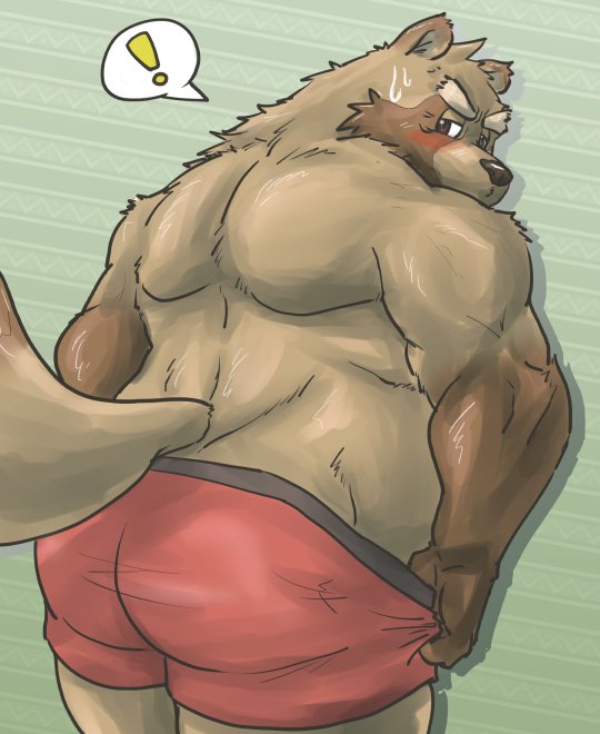 General: #presenting #male #solo #underwear #nsfw #e621 #clothing #topless #butt #anthro #- #blush #muscular #undressing #! #clothed #looking-back #rearview