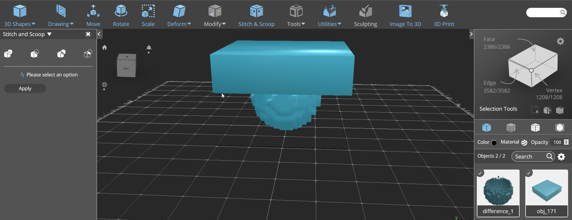 So i re-created some cubes and applied the Stitch and Scoop tool: