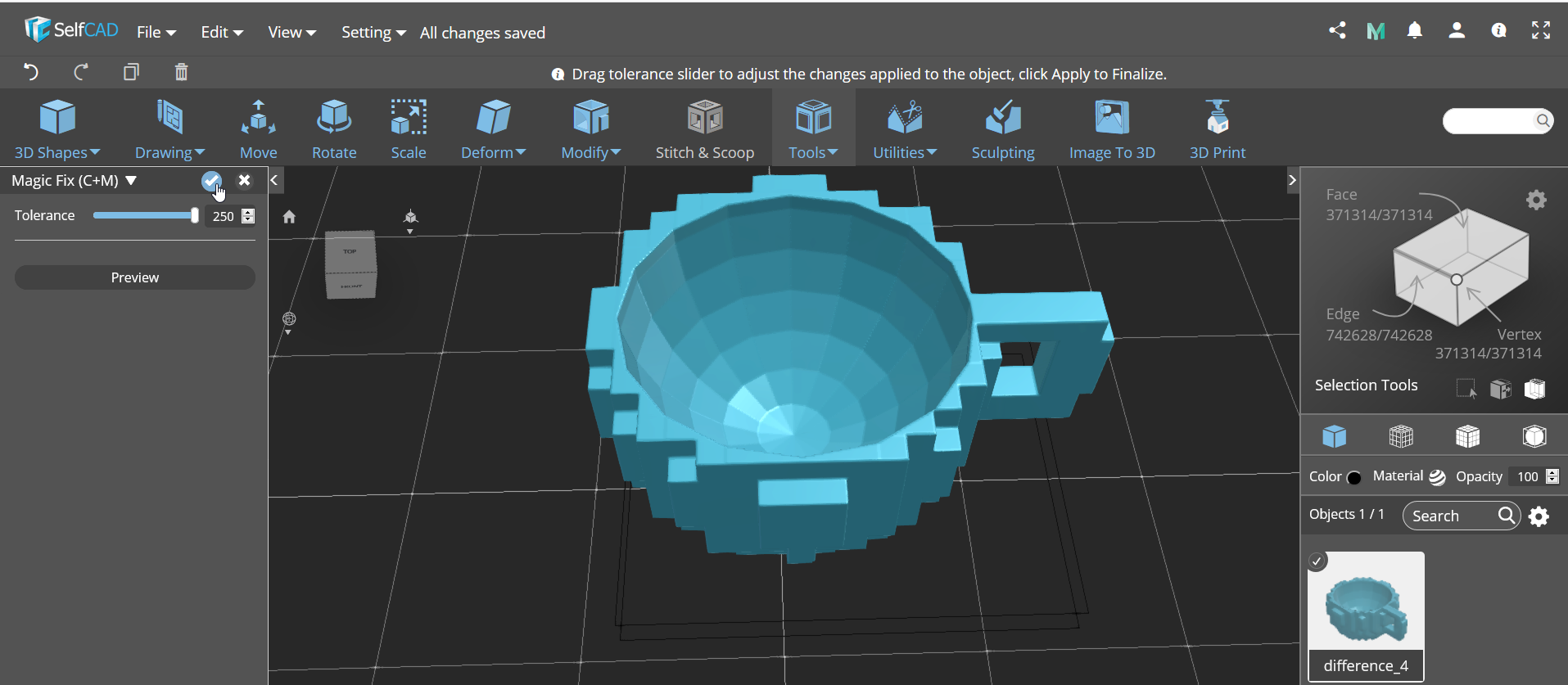 And finally I ran the model through the Magic Fix tool, which is supposed to correct any invalid geometry that would make the model unprintable: