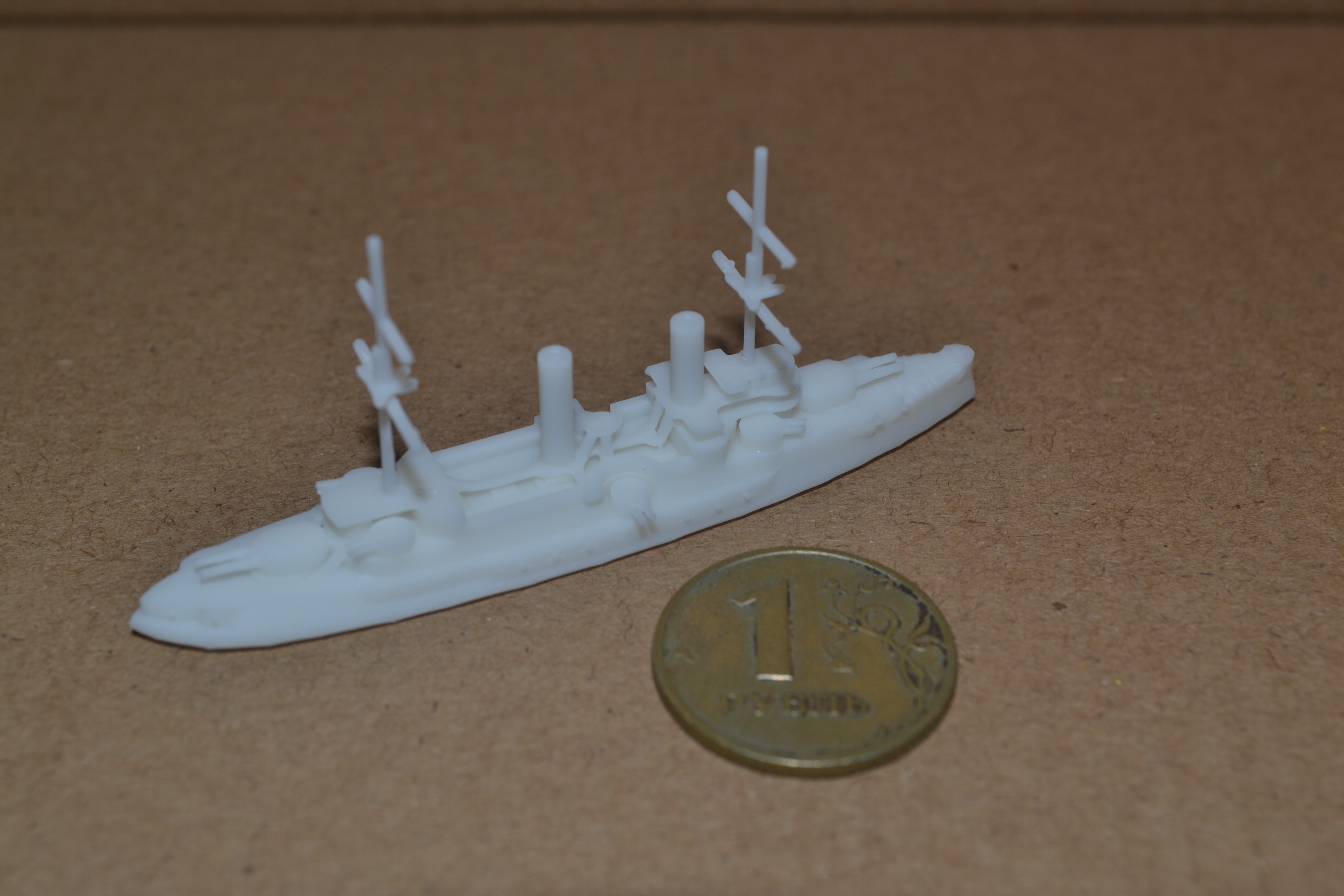 The first is a 1:1800 scale model of the Borodino-class battleship, a pre-dreadnought of the Imperial Russian Navy. You can find it on Wargaming 3D