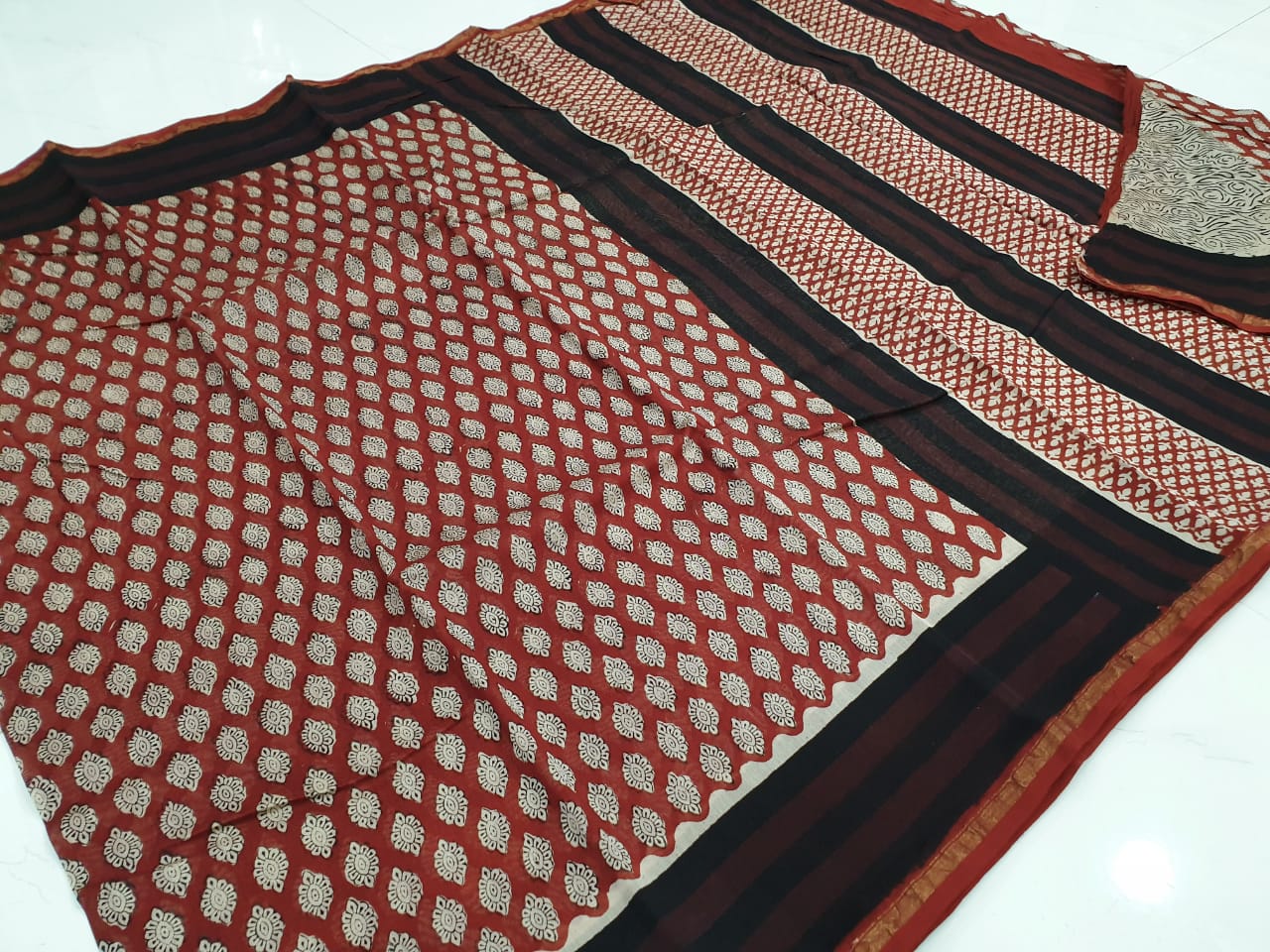 Although much difference is not noted, but the background color of the Fabric marks the difference between the two. The Sanganeri prints are done on a white background and the Bagru prints are essentially done on background of red and black.