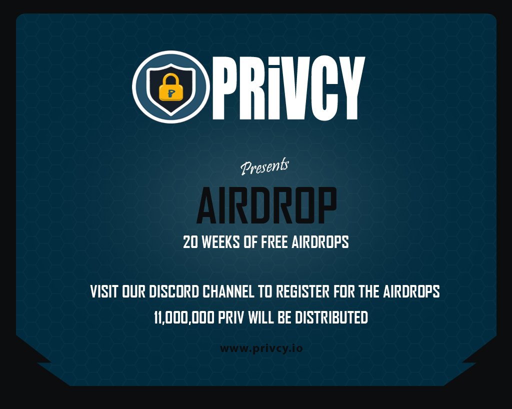PRiVCY offers fast, secure and cheap transactions ideal for day to day use. But the real driving force of any coin is the community behind it. And that is the most important thing. Most of the coins don't put enough attention to that fact but not with this coin. They take this important issue very seriously and for that they are offering 20 weekly Airdrops.