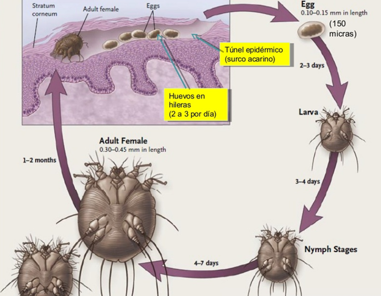 Muy valiosa tu información @vidaparasita actualmente estamos viviendo un brote de sarna en el oriente del país, no se, si es por el agua u otro factor. Los abuelos decían, lava la ropa con agua caliente y vinagre, al bañarte sécate con una sola toalla, no compartas la ropa y cambia las sábanas de la cama.