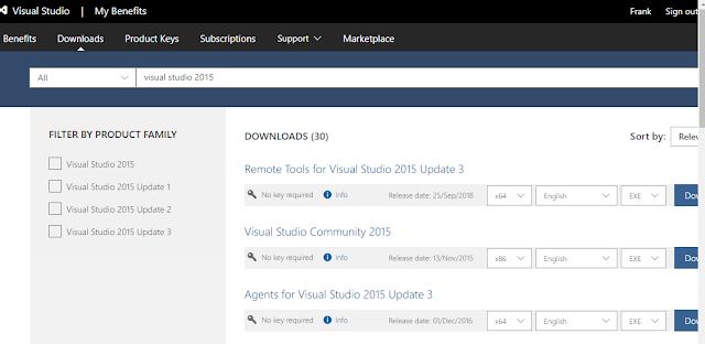 Para descargar su versión community, la cual es gratiuta, debemos dirigirnos la página de Microsoft de Descargas viejas (la versión actual es la 2017, pero todavía no la he tratado, aunque es muy similar)