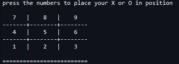 print("press the numbers to place your X or O in position\n")