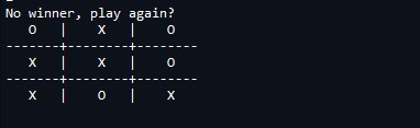 - print("No winner, play again?")