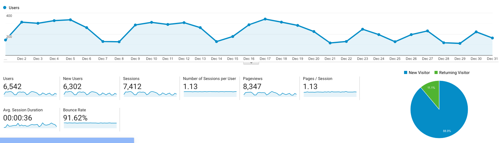 Sessions went down to at 7,412 on my website.