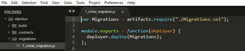 We'll want to be able to interact with this thing on the blockchain, so we have to migrate it there. See the "migrations" folder just belows the "contracts" folder? If you twist that open you'll see a file inside called "1_initial_migration.js". We're going to copy and modify a bit of that code